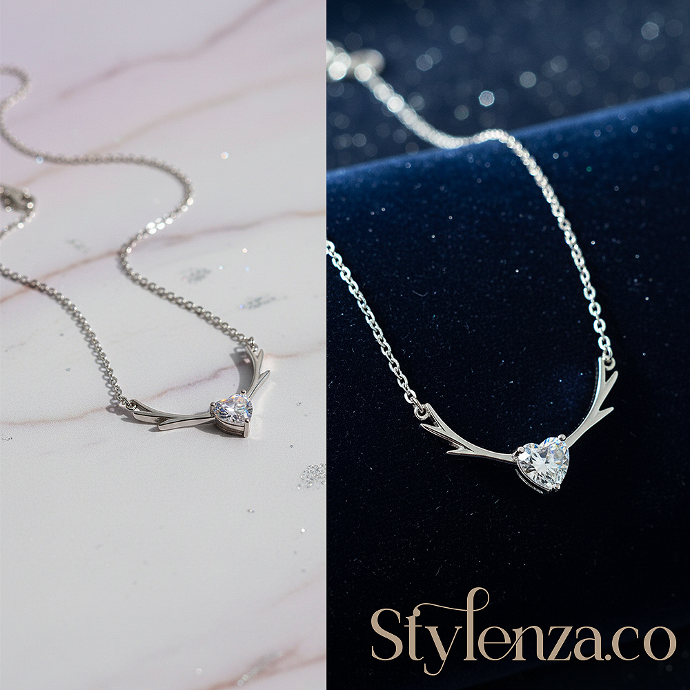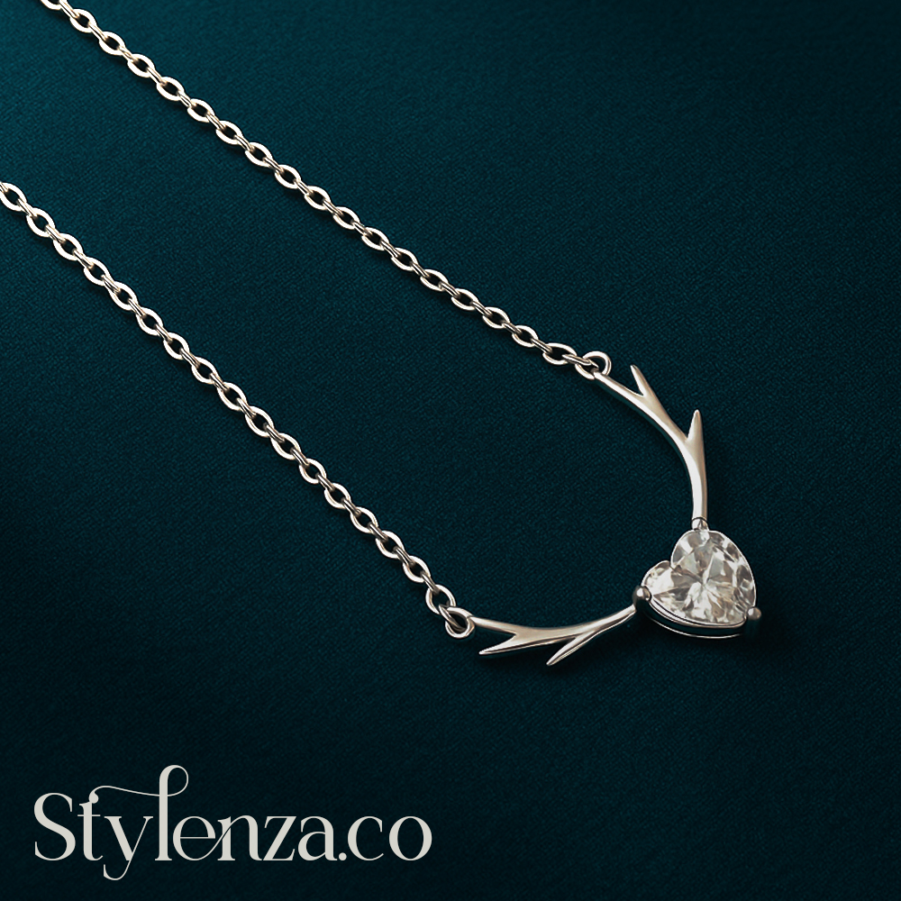 “Stylenza introduces a necklace that combines timeless elegance with modern style. The Silver Heart Diamond Necklace, crafted from high-quality 925 sterling silver, features a stunning heart-shaped diamond framed by an elegant arrow-inspired design. This delicate piece brings sophistication to any outfit, whether worn daily or on special occasions. The sparkling diamond catches the light beautifully, creating a luxurious and eye-catching effect. Hypoallergenic and skin-friendly, this necklace ensures long-lasting wear and comfort. Make every moment shine with Stylenza’s premium jewelry piece that perfectly balances grace, quality, and style.”